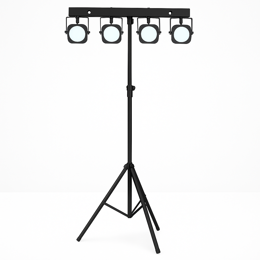 Das Eurolite KLS-190 bietet vier helle RGBW-LED-Spots auf einer stabilen T-Bar – schnell aufgebaut, sofort einsatzbereit und perfekt für den mobilen Einsatz.